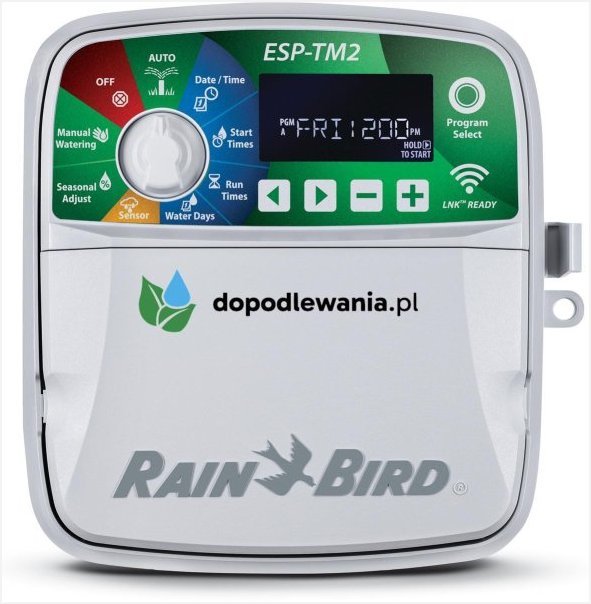 Rain Bird ESP-TM2 to niezawodny, kompaktowy sterownik do automatycznego nawadniania, przeznaczony do ogrodów przydomowych i niewielkich instalacji komercyjnych. Umożliwia zarządzanie do 8 sekcji i oferuje prostą obsługę z możliwością zdalnego sterowania przez Wi-Fi (z modułem LNK2).